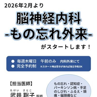 脳神経内科(もの忘れ外来)開設のお知らせ