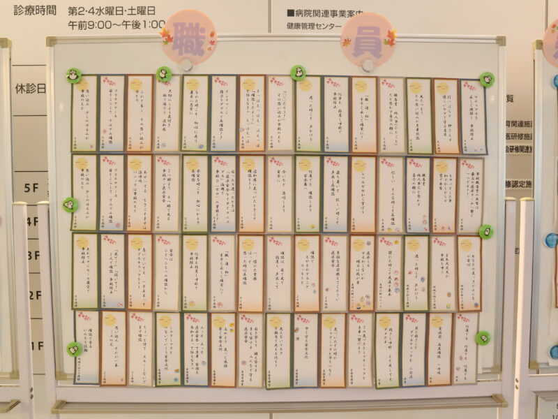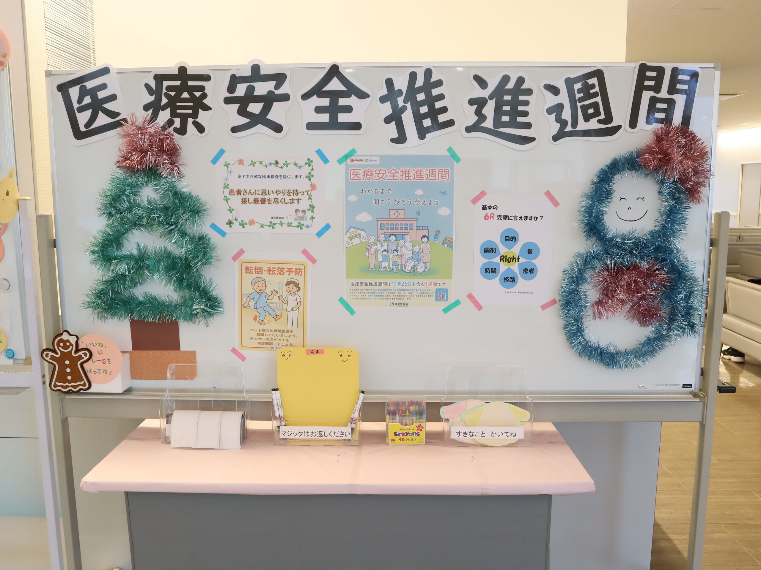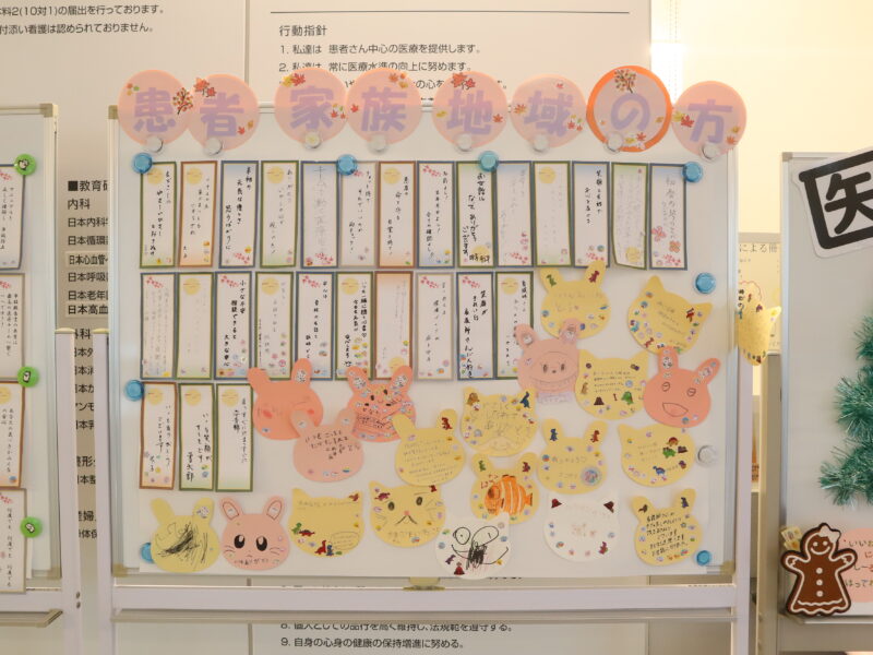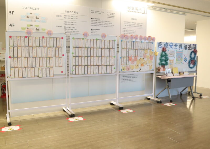 2025年は、新館総合受付前に、職員や患者・家族の方の標語・ポスター掲示により医療安全行動の意識の向上に取り組んでいます。